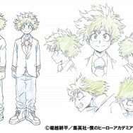 そして、キャラクターデザイン・馬越氏が手がけた、主人公・緑谷出久(みどりや いずく/通称 デク)と、彼の運命を変えるNo.1ヒーロー・オールマイト、この2人のメインキャラクターの設定画も公開。