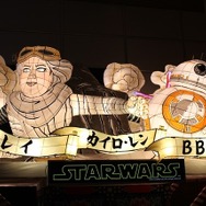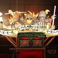 歩みを進めると和とのコラボレーションとなる。まずは2015年青森ねぶたまつりで話題を呼んだ「スター・ウォーズねぶた」。ルーカスフィルム公認であるこのねぶたは、ダース・ベイダーたちヒール役、最新作のレイ、BB-8コンビ、お馴染みのC-3POとR2-D2、そして第1作目のルーク・スカイウォーカー、オビ=ワン・ケノービ、ヨーダたちの4種類がある。一挙に並ぶ様子は壮観だ。