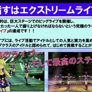 全員デビューこそしたものの、一向に鳴かず飛ばずなアイドルたち。そんな彼女たちの才能を開花すべく、全員参加の強化合宿が行われるといったプロローグが判明。また、巨大ステージでのビッグライブ「エクストリームライブ」の達成という、本作での目標も明らかとなりました。