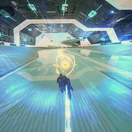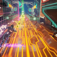 本作はランナー形式のゲームとなっており、ディスクやライトサイクルなどを駆使して眩い電脳世界を走り抜けます。