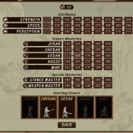 また、本作で行われる戦闘はターンベース制。標準的な攻撃、アクティブな防御に加え、中段、下段、八相など、いわゆる「五行の構え」も導入された戦略的な戦いが楽しめます。7つ存在する道場のマスターと"Emperor"を倒すことが目的となるようです。