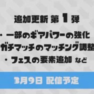 今年の1月でアップデートの予定が終了した『スプラトゥーン』でしたが、このたび更なるアップデートの実施が明らかに。今年の夏までを目途に、数回行うとのこと。追加更新の第一弾は、「一部のギアパワーの強化」「ガチマッチのマッチング調整」「フェスの要素追加」などのアップデートを、3月9日に配信します。