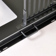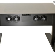 アルミは見た目も綺麗だが放熱効果もあるという。それゆえPCなど発熱しやすいきょう体にはよく使われる。デスクPCは熱のこもり具合が心配だが、今回の製品は12cm角のファンを4基搭載することでエアフローにも配慮。なによりもボタンで高さが調整できる点が進化したところと言えそうだ。