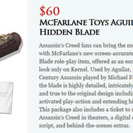 Ubisoftと協力している前売りチケットサイトKernelでは、特典付きのものも含め、全8形態の前売り券が販売予定。価格は15ドル(約1,600円)から1,200ドル(約130,000円)まで幅広く、作中に登場するブレードのレプリカや特製Tシャツ、フィギュアなど、ファン垂涎の品々が付属します。