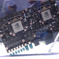 矢戸: あれは「Tegra」がどういった領域で使われているかという例として紹介したものです。自律運転を研究しているようなお客様には今年のCESで発表された「Drive PX 2」という、Pascal GPUを搭載した「Tegra」2基とディスプレイGPUが2基搭載されている非常に高性能な車載コンピューターがありますが、それ以外で自律運転を高速道をだけで利用するレベルで使用できるものとして名刺サイズの新型「Tegra」を紹介しました。こちらもPascal GPUを搭載した「Tegra」のボードですが、GPUが1つだけのSoCですので「Drive PX 2」とは異なることがわかると思います。新しくなったのはチップではなく形だけですね。これはNvidiaが発表しているモジュール型スーパーコンピューター「Jetson TX1」に搭載されているものに似ています。