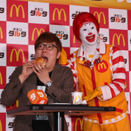 発表会では、人気YouTuberのHIKAKIN氏が登場。公私を問わずマクドナルドを愛好しているだけに「販売開始日の朝に並ばなくても、こうして試食させていただけるのがうれしい」と満面の笑みで語りました。また、「"凄"チキンタツタ」を試食した感想は「思った以上に生姜醤油の味が強く出ていて、モチモチのバンズのボリューム感もあってリッチ」、「"凄"チキンタルタ」は「おいしくて豪快にかじってしまいました。口の中に広がるタルタルソースが濃厚で、タツタとはまるで別物」と語り、両方に太鼓判を押しました。