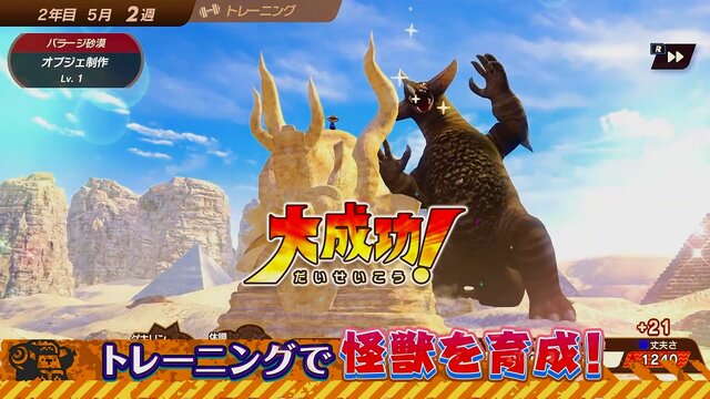 本作は『モンスターファーム』とウルトラ怪獣がコラボした育成シミュレーション作品。プレイヤーは「怪獣ブリーダー」となり、「ゴモラ」や「ダダ」「ゼットン」などお馴染みのウルトラ怪獣達を育てながら、怪獣同士が戦う大会で優勝を目指します。