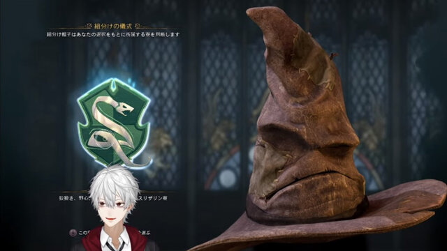 また鷹宮リオンさんも、熱烈にスリザリンを望んでいたようです。2月10日の配信「【ホグワーツレガシー】純血至上主義の配信【にじさんじ/鷹宮リオン】」において、「私の中には野心しかありませんよ」と言いながら組分け帽子の質問に回答。狙い通りスリザリン生になると、“純血至上主義”を掲げる生徒になりきってプレイしていきました。
