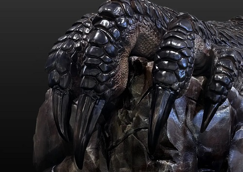 『モンスターハンター』の歴史を振り返る「モンハンヒストリーウォール」に加え、全44種類のフィギュアの展示がおこなわれる「モンハンヒストリーゾーン」。同ゾーンには最新作『モンスターハンターワイルズ』に登場する「セクレト」の等身大フィギュアも展示されています。