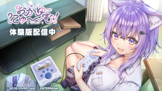 『おかゆにゅ~~む!』は、VTuberグループ・ホロライブ所属の「猫又おかゆ」さんがメインヒロイン&監修を務める純愛ノベルゲームです。突如プレイヤーの前に現れた猫又おかゆさんの飼い主となり、甘々でマイペースな日々を過ごします。またゲストとして、同じホロライブゲーマーズの戌神ころねさんが出演します。
