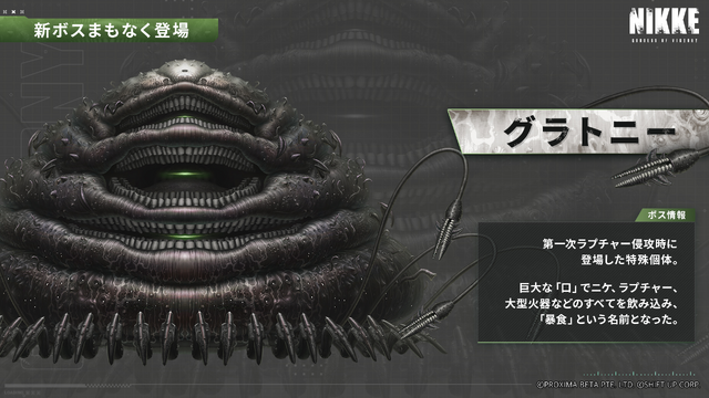 第一次ラプチャー侵攻時に登場した特殊個体「グラトニー」が、新ボスとして登場します。あまりにも大きな「口」が、あらゆるものを飲み込む恐るべき存在です。