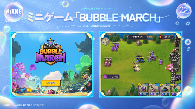 「BUBBLE MARCH」は、リトルマーメイドが寂しさを紛らわすために作ったミリタリーゲームとのこと。水泡で作った味方とラプチャーが戦い、領地を奪い合って勝敗を決します。