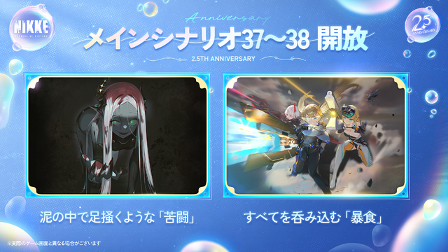 4月24日(木)のメンテナンス終了後、『勝利の女神:NIKKE』2.5周年のイベントが幕を開けます。新ニケの実装に新たな物語、数々の報酬など、見どころがたっぷりです。開幕日から忘れずに参加し、イベントをご堪能ください。