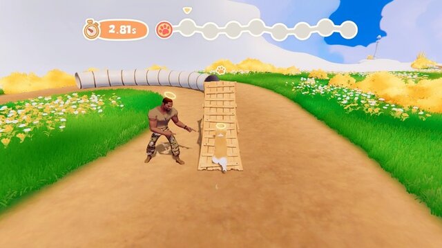 一般的な3Dプラットフォーマーらしい遊びでも、ワンコが一生懸命やっているのを見ると「とっても賢いね~、エラいね~」と褒めてあげたくなりますね。物を押してるときに見せるプリプリのお尻がkawaii。