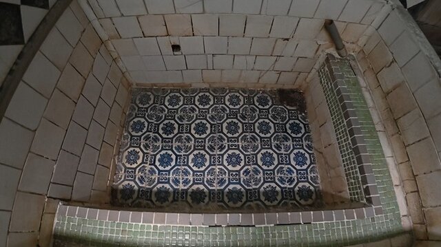 そして湯船の方へ。最盛期はたくさんの人々が利用したみたいですが、回転率を高めるために「立ち湯」形式だったそうです。つまり、ゆったりと腰を据えて湯に浸かることはできず、中腰になって楽しんでいたとのこと。
