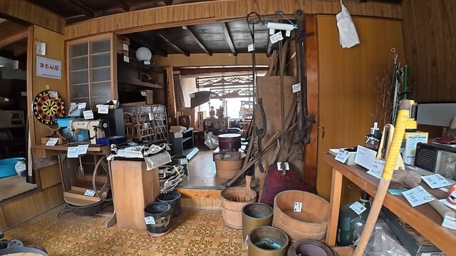 「旭湯」でのノスタルジー気分をたっぷり堪能したのち、次に案内されたのが岡戸さん自身が経営する雑貨店「古もん屋」1号店。店内にはところ狭しと、あらゆる昭和レトロな品々が並んでいます。