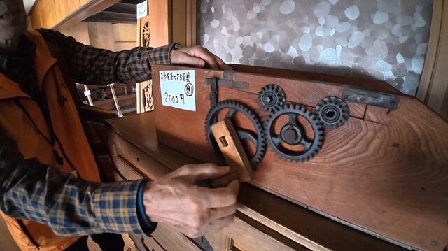 こうした特殊な生活事情のため、昔は食器などを洗えなかったので、こちらの「共同洗い場」を使用していたとのこと。火かき棒のようなもので栓を抜くと、水が流れて溜まっていく仕組み。筆者も実際にやらせてもらいましたが、ポコポコと泡が湧きどんどん水かさが増してくる様子はとても興味深く、生活者の知恵が詰まっていると感服しました。