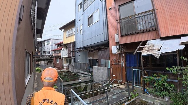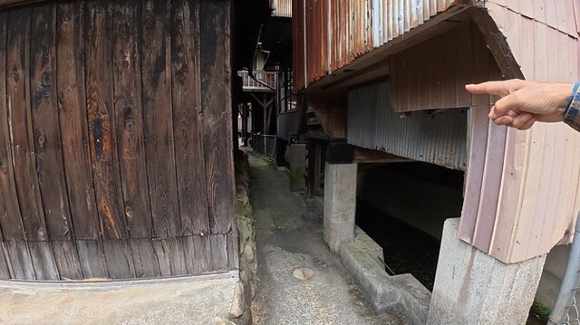 この路地を流れる水路は、明治時代から断続的に洪水に見舞われてきたそう。土手の上に建てられた住居は実は違法建築ばかりらしく、土地の奥行きがないため1階にあたる部分が「地下」に相当し洗濯や食事を行い、2階が居酒屋などの商売スペース、そして3階が居間という特殊な構造になっています