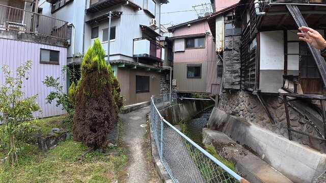ここでロケーション比較してみましょう。切り立ったフェンス、流れる水路、家と路地をつなぐ短い架け橋など、ゲーム内の「戎川町」のモデルとなっているのは一目瞭然ですね。