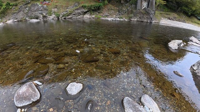 なんとか滑り落ちずに降りることに成功。そこには、馬瀬川の美しすぎる清流が一面に広がっていました。ちなみに、この川では鮎漁が盛んで、先に紹介した「魚忠」のご主人がちょうど居合わせており、鮎網を上げるところを見学させてもらえました。