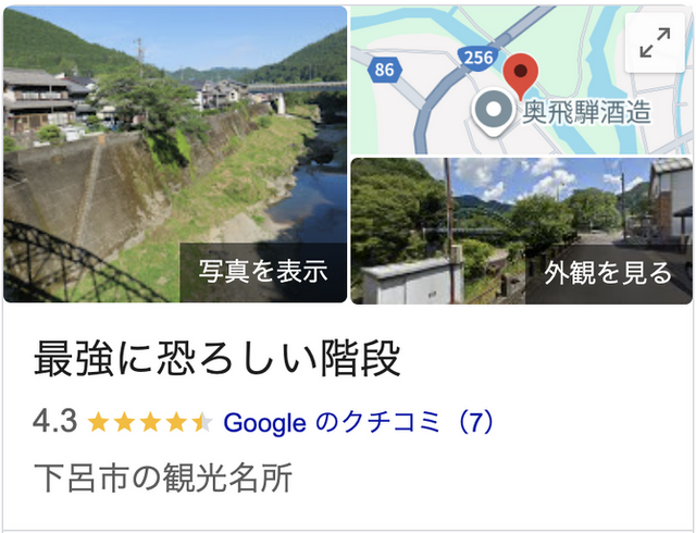 ちなみに、Googleマップで「最恐の階段」と調べてみると……。