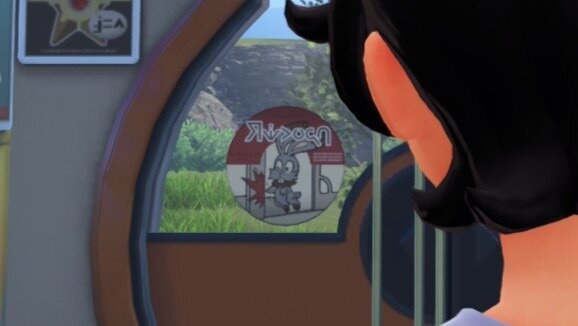 本マスコットは人型のウサギであり、安全啓発のため“電車のドアに指を挟まれる危険性の注意喚起ステッカー”などに登場していますが、「ミアレ駅」の電車内をよく見ると“同様にドアの危険性を伝えるホルビー(ウサギ型のポケモン)のステッカー”が存在。一度駅を離れるとこの電車内を覗けなくなるため、ゲーム最序盤のみじっくり確認できるレアなネタとなっています。