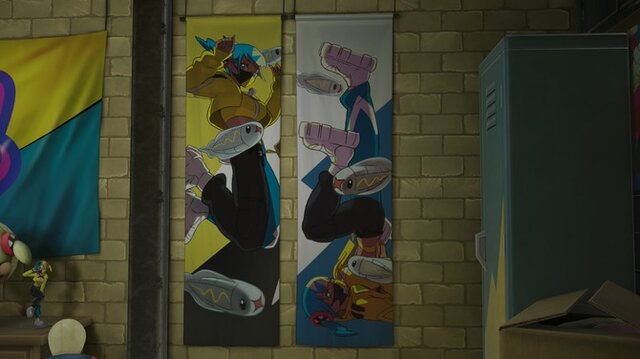 さて、その中に1枚、髪形がツインテールじゃないカナリィがいます。よく見るとカチューシャの上には黄色いトサカがあって、「シビルドン」の進化前、「シビビール」を思わせるスタイルです……もしかすると、“ちょっと昔のカナリィ”なのかもしれません。ポスターが一枚だけというのはまだ今ほど人気がない初期の時代なのでしょうか!