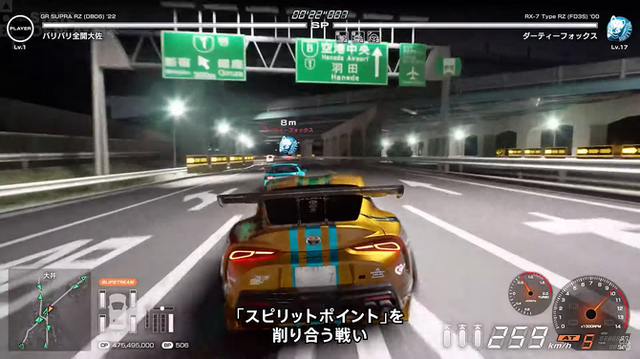 本作は、首都環状を舞台にカスタムした自分だけのマシンで400人以上のライバルと闘い頂点を目指すレースゲーム。シリーズ独自のSPバトルはドライバーの精神力を数値化した「スピリットポイント」を削り合う戦いで、速さも重要ですがライバルとの心理戦が勝負を決めるカギとなります。