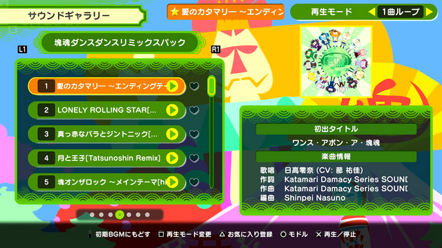 第1弾DLC「塊魂ダンスダンスリミックスパック」には、ステージBGMとして再生できる『塊魂』シリーズの過去楽曲をリミックスした、電音部コラボEP「カタマリスペクト」の収録楽曲5曲を収録しています。