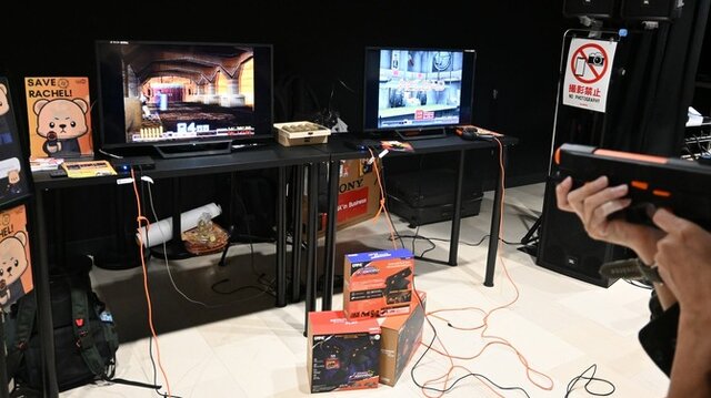 また会場では、達成電器の方にもお話を伺うことができました。本プロジェクトは、「ガンコンと、ガンコンで遊ぶタイトルを現代に残したい」という強い想いがあって実現したとのこと。