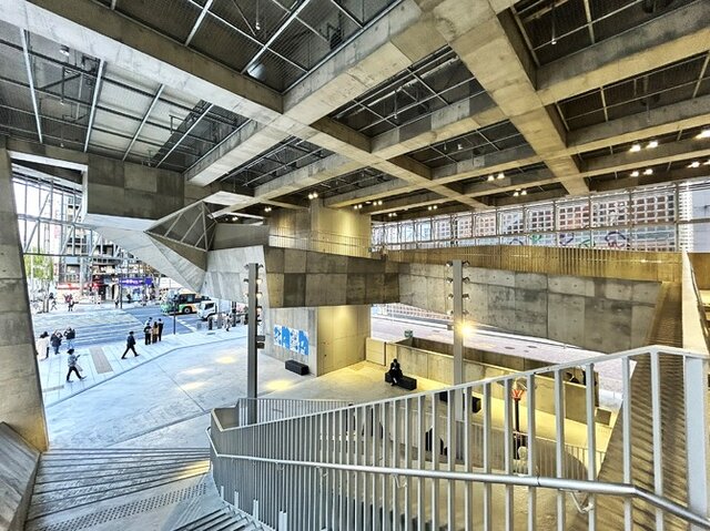 あるいは、銀座の交差点からふらっと歩いていると、いつの間にかむきだしの鉄骨と、荒々しいコンクリートがそのままの建物の中へ入りこんでしまっていたりします。気が付けばGinza Sony Park。いや、ここはどこからが建物の外で、どこからが中なのかわからないように意図して設計されている。これがある種の不条理でなくてなんでしょうか。