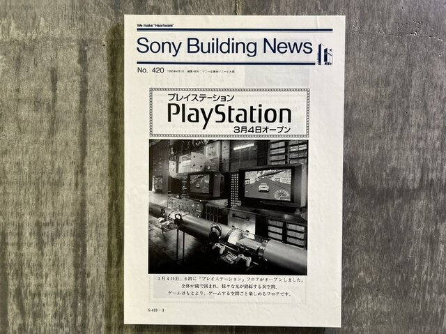 当時の社内報1面に書かれた、ソニービルでの「プレイステーションコーナー」設立について