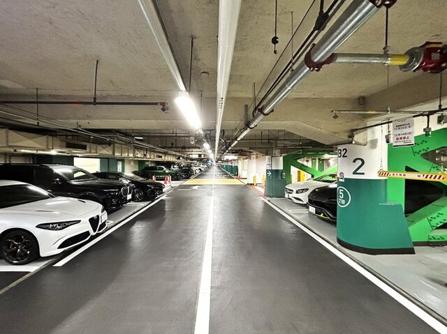……と、途中まで思うんですが、ここでもリミナルスペース的な風景が。レストランのすぐそばで駐車場がまる見えになっている。もちろん、これも意図した設計です。レストランさえも外と内の曖昧さを徹底しています。ふと駐車場も見てみると、どこまでも続くような広大なスペースが広がっていて、軽いめまいすら覚えてしまいました。