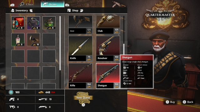 クエストを達成することで得られるのが“お金”と“トークン”です。お金はショップでの買い物や武器の強化、現場などから発見される証拠情報の共有に使用されます。一方、トークンはマップ内に点在する宝箱を開けるために必要となります。宝箱には銃や防具など、あらかじめ内容物のジャンルが決められており、欲しい装備の系統を狙って開けることが可能です。ただし、宝箱のジャンルによって必要なトークン数が異なるため、欲しいものに応じたトークンを用意する必要があります。お金を使って武器や防具を直接購入することもできますが、後々の武器強化にもお金を使うことになるため、必要に応じた買い物が必要になります。結果として、クエストをこなしていくことで自然と装備が整っていく設計になっていると感じました。
