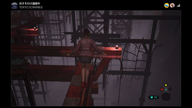 途中でステージの難易度が上昇してくると、移動とカメラ操作が別では立ち行かなくなってきたため、操作を友人に「移動」、「カメラ」、筆者が「アクション」、「アプリ」というように変更。友人の操作に対して必要なタイミングでアプリやアクションを行うという、サポート的な役割に徹することになりました。