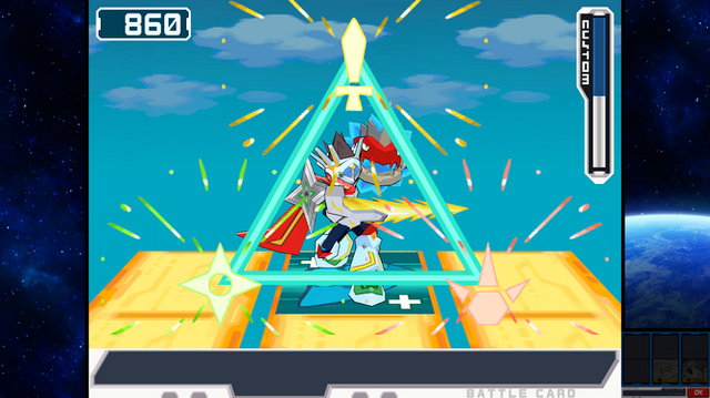 『流星』シリーズのゲームプレイと言えば、『エグゼ』シリーズから”奥”に伸びた3Dでのバトルが特徴的なシリーズです。デッキを組み、パネルを移動し、敵の隙をつく。シンプルながら非常に自由度の高い戦闘システムは、いつまでも飽きない中毒性を備えています。