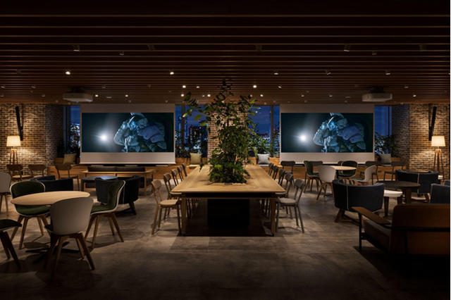 窓側2面に大型スクリーンとプロジェクターが2機種ずつ設置されており、サラウンドスピーカーも備わっているとのこと。映画鑑賞会なども行われるそうで、お話を聞いているだけでも「こんなところで働きたい……!」という気持ちが湧き出てきました。