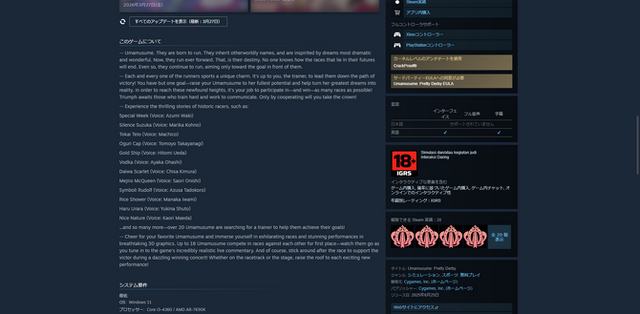 インドネシアにおける年齢別のレーティング表示の義務化が要求されることに伴い、Steamでは一部の地域からインドネシアゲームレーティングシステム(以下、IGRS)の表示が必須となりました。その結果、『ウマ娘 プリティダービー』は「18歳以上」、『メタファー:リファンタジオ』に至っては「配信に不適切」というレーティング表示がなされたことが話題を呼んでいます。