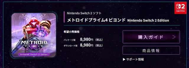 これまで任天堂から発売されてきたスイッチ2タイトルのダウンロード版の価格をチェックすると『マリオカード ワールド』はが8,980円。『ドンキーコング バナンザ』は7,980円。『メトロイド プライム4 ビヨンド』が8,980円と、やはり大作系タイトルは8000円~9000円台近い価格に設定されていることが確認できます。そうなると、本作の設定された価格での内容のボリューム感は気になるところではありますね。