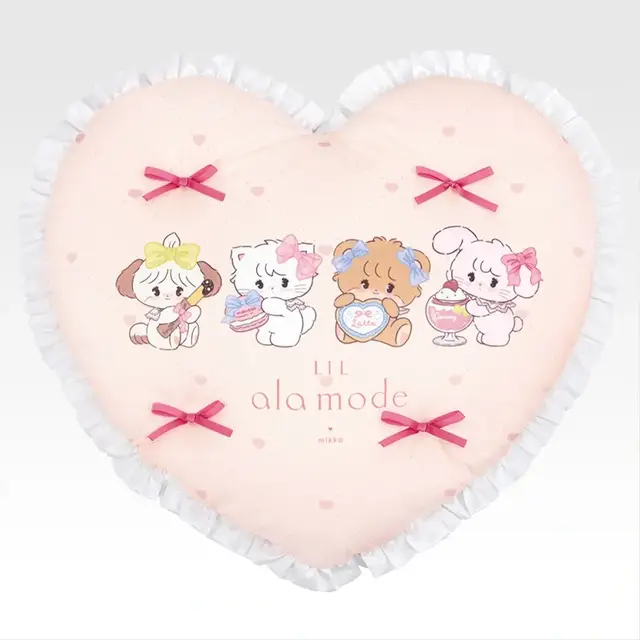 本商品は、人気キャラクター「Lil ala mode(リルアラモード)」のハズレなしグッズくじです。A賞は描き下ろしイラストを使用したフリル付きハート型クッション、B賞は「ムース」のお顔の刺繍が可愛いレース付き巾着ポーチが登場します。