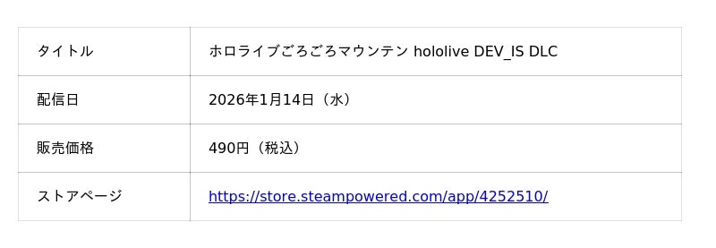 株式会社ビサイド(本社:東京都立川市、代表取締役社長:南治 一徳、以下ビサイド)は、現在Steam(R)にて配信中の『ホロライブごろごろマウンテン』において、大型アップデートとなるVer2.0および、2つの新規コラボDLCの配信を開始したことをお知らせいたします。